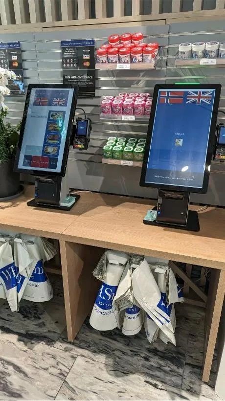 如果在候机时进商店逛逛,不难发现全球机场门店也已开始部署自助服务的步伐。例如挪威机场的WHSmith商店、美国安大略机场Einstein Bros Bagels都用了Elo Wallaby™ +I系列触控一体机的产品组合,为往来客户提供了更便利的自助服务。