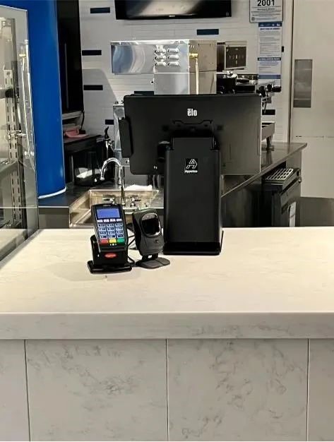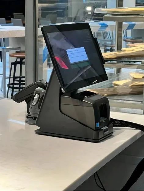 Elo的mPOS收银机,是Elo经典POS收银产品之一。主机使用I系列4.0触控一体机,底座可嵌入打印机,形成占地面小的收银设备,有效优化咖啡店台面收纳。Elo的mPOS与店内的黑白风格相得益彰,设备使用更是流畅便捷,为商店以及球场提供了优质的服务体验。